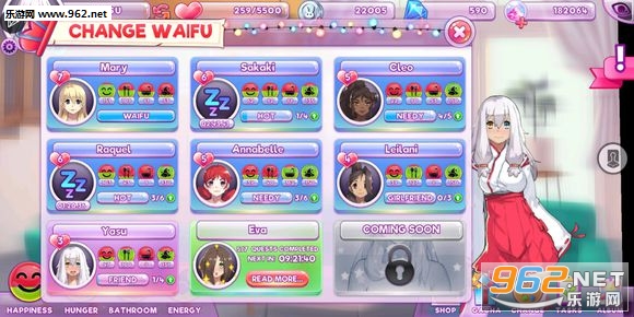 Pocket Waifu是一款美少女题材的养成游戏,玩家在游戏中,可以解锁各种各样的妹子,并为她们进行装扮,提升好感度等各种属性,获得更多的过场和对话,进行超多互动。