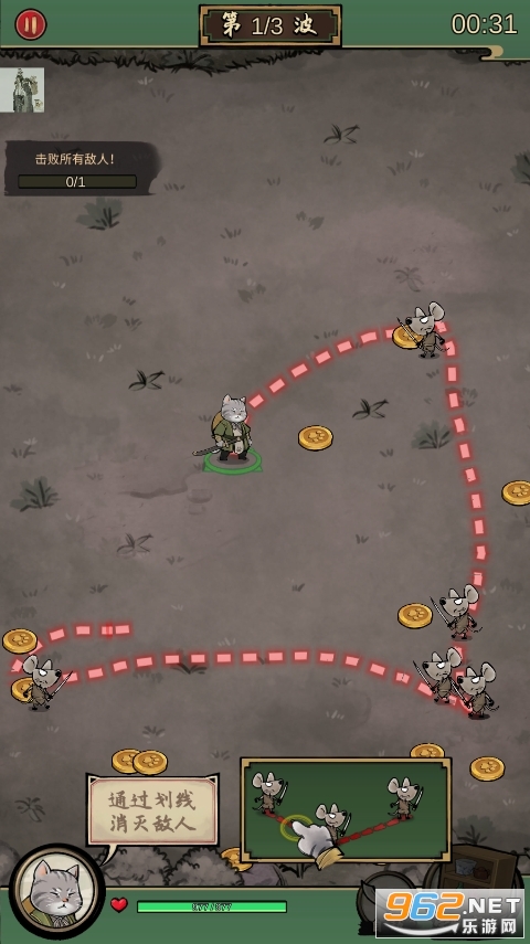 墨水喵我的喵会功夫游戏是有着Q版可爱的画面,玩家在这里是需要根据游戏提示进行涂抹,也可以随意进行水墨画画的,不过最重要的还是帮助你所拥有的猫们获得快速成长的机会,这样一来你的战斗能够力就会变得愈加强大起来!