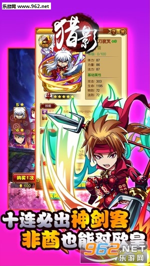 《猎影》集合Q萌人设、恶搞剧情、卡牌挂机、丰富收集等众多玩点,并独创怒气技、武将培养等创新玩法!让我们一起体验剑客之道,看看你是不是真正的玩剑高手。