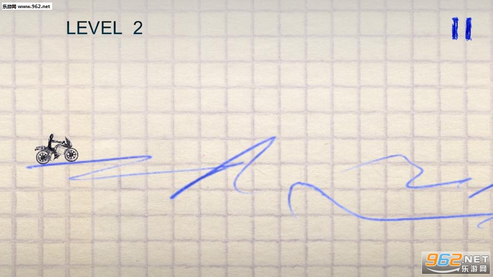 玩家在游戏中,将能够控制摩托车,挑战各种关卡。蓝色和黑色圆珠笔,为游戏带来了别具一格的魔性画风,就好像是在草稿纸上进行游戏一样。