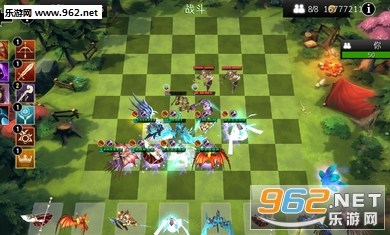 3、在8x8战场上自由设置英雄,根据他们的AI,灵活安排英雄在棋盘上的位置,发挥最强战斗力。