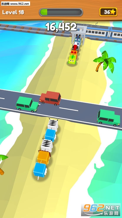 按住可以把动物发射到马路对面,快点帮助动物们到达农场,记得避开过往的车辆哦!