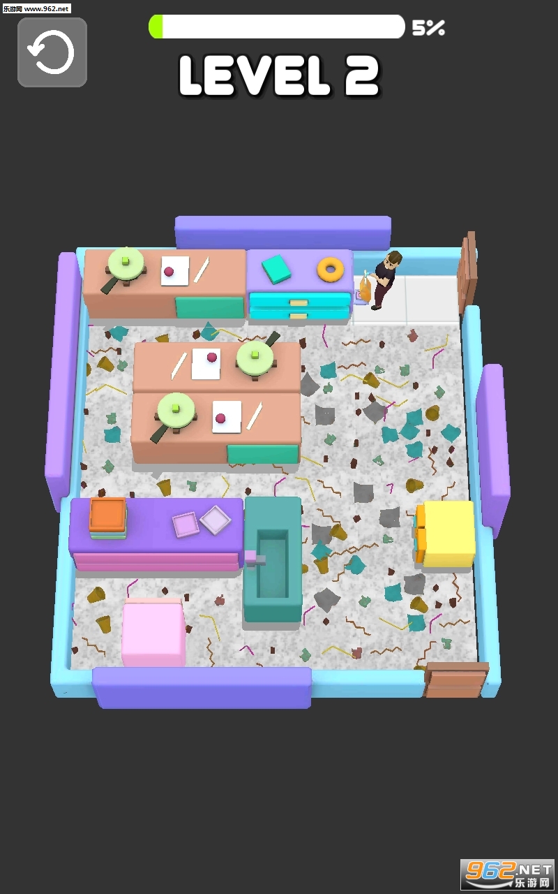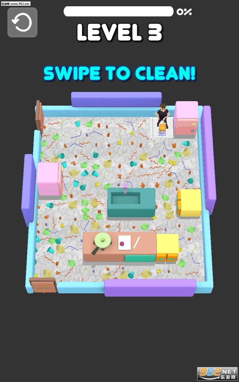 在一个全是垃圾的屋子里,你需要把地板清洁干净,关卡众多