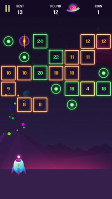 每发射一次激光,新出现方块的数字会变大,击碎方块的难度也会加大。