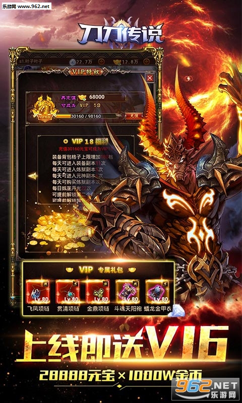 1、上线赠送VIP4、6666元宝、100W绑定铜币、2000礼金;