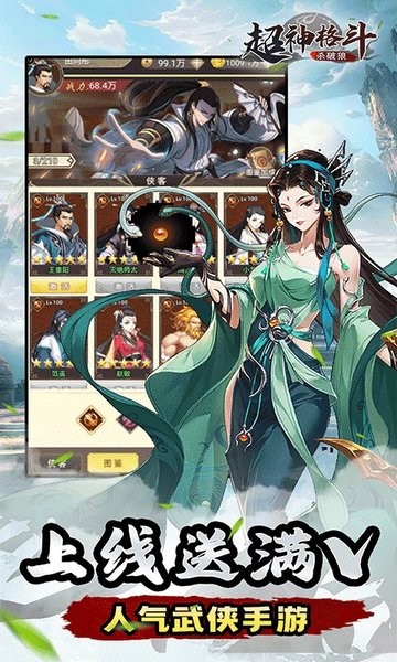超神格斗杀破狼游戏是全新武侠手游,你在游戏中将扮演侠客搭配自己心意的武侠队伍,冲向武林之巅。