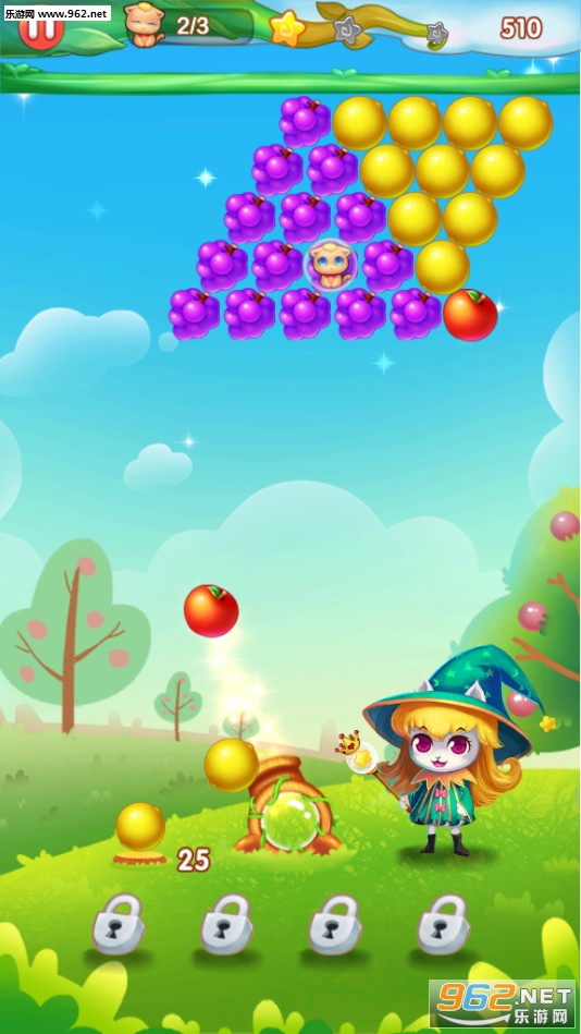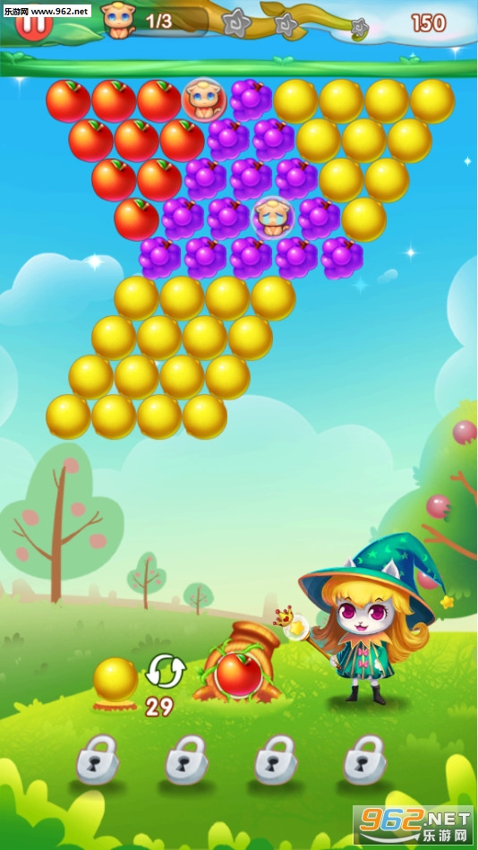 水果泡泡传奇是一款可爱的全新消除类休闲游戏。在缤纷多彩的水果泡泡群中,和小女巫猫安吉拉并肩作战,一起闯关。