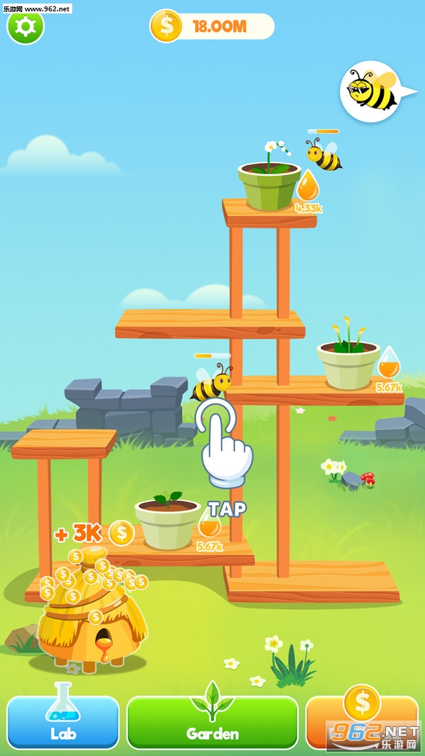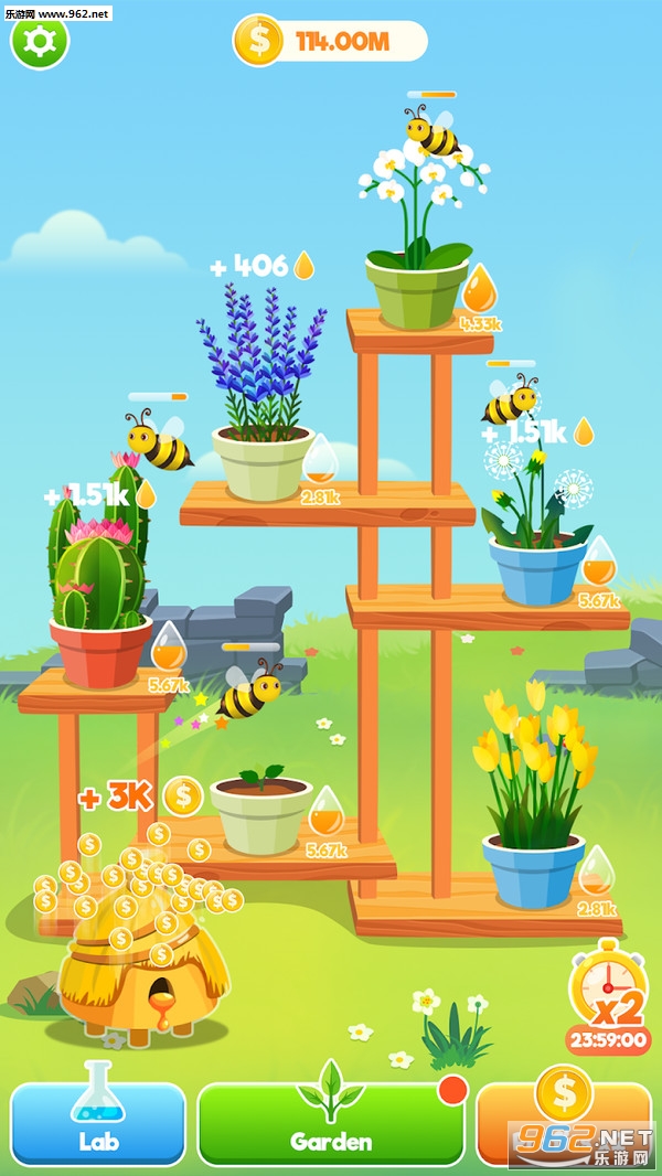 趣味的经营游戏,玩家可以招募解锁一些蜜蜂来帮助自己种植一些花朵,可以在单位时间收获一定的金币,利用金币升级自己的花园、蜜蜂和解锁其他的作物等,喜欢的朋友可以下载试试。