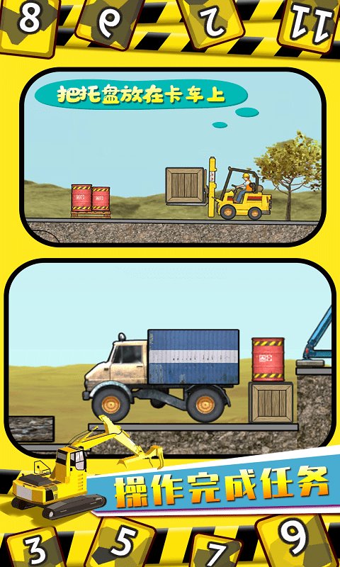 3、适合儿童的玩法,手指触屏操作,点击屏幕驾驶挖掘机工作啦!