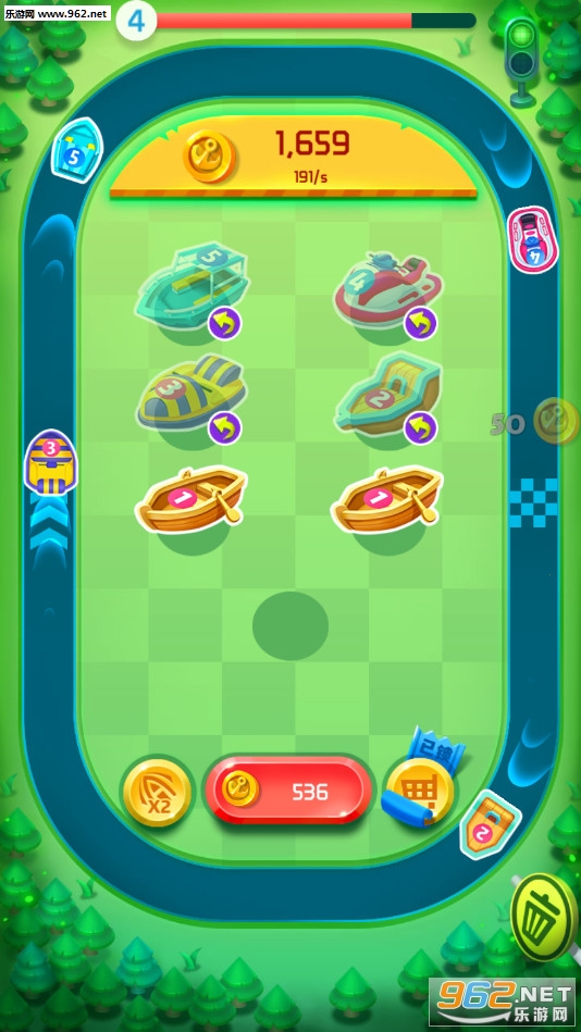 《迷你战舰合成安卓版》是一款画面清新的合成类放置休闲手游,游戏中玩家可以将两个相同的船只合并在一起获得新的船只,船只上有着数字,代表着等级,船只越高级,环绕行驶一圈获得的金币越多,不断地升级解锁新的位置。