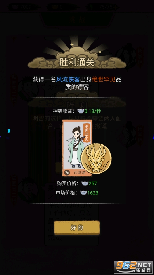 《聋门镖局》是一款充满江湖气息的经营模拟游戏,玩家在游戏中能够体验到押镖的危险与刺激。游戏中的任务设置丰富多样,玩家不仅需要在路线选择上做出正确的决策,还需要善于应对各种意外情况,才能成功完成任务游戏画面精美,游戏性高,玩家可以在游戏中体验到一种别样的江湖风情。同时,游戏的策略性和挑战性也很大,需要玩家有一定的眼光和耐心才能取得成功。
