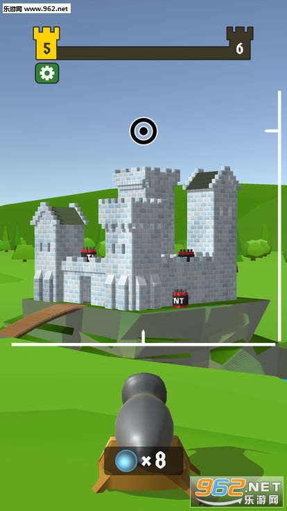 玩家需要控制大炮瞄准,尽可能射击炸药桶,帮助你更加轻松摧毁城堡哦!