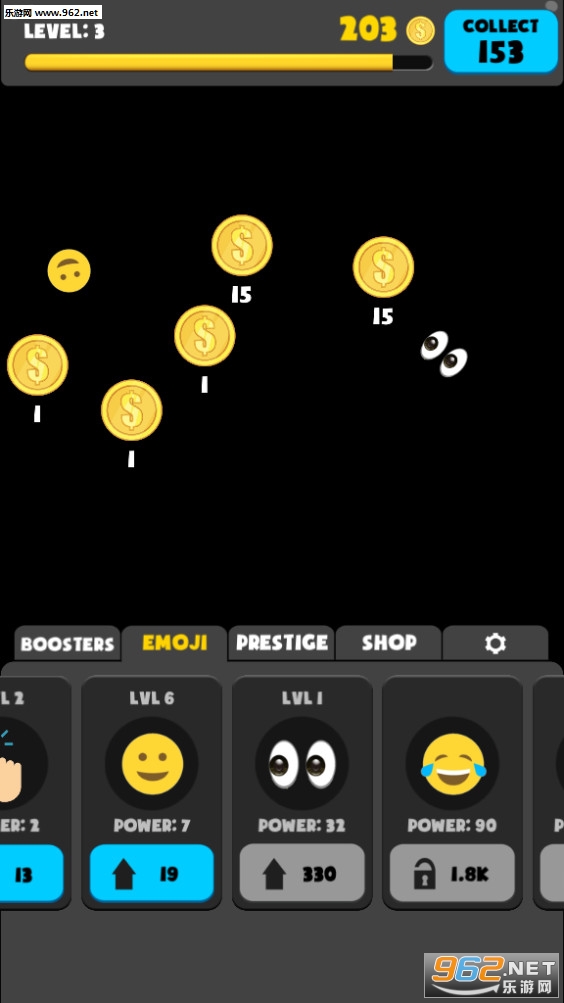 《Idle Emojis》这是一款关于放置类型的休闲游戏,里面所包含了非常多的表情包,玩家通过放置类型的玩法,让表情包进行碰撞,将不断的获得金币,带给玩家更多的乐趣。