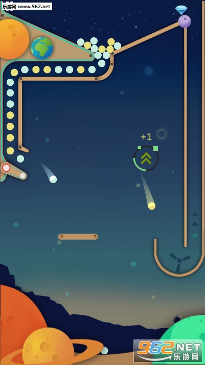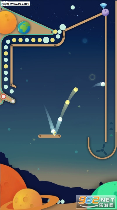 《大彩跳球安卓版》是一款休闲打发时间的跳跃游戏,只要你玩得好,这款游戏是没有结束的,左右滑动木板,让木板接住下滑的球球,让球球跳跃,然后再次进入管道,就这样一直重复,但是随着时间的推移,木板会越来越短,你要尽可能多的接住球球。