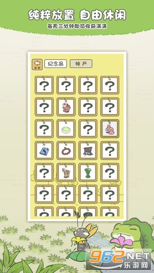 一款非常有趣的模拟养成游戏,游戏的操作简单容易上手,还有着多样的挑战等待着你,玩家将完成不同的挑战,获取各种各样的称号和成就,游戏中你无法直接控制小青蛙的行动,但是你可以为它准备各种各样的行李和物品,推荐给喜欢休闲游戏的玩家。
