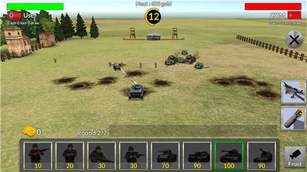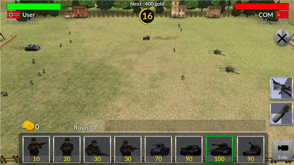 3、进入游戏后,你可以派遣士兵和坦克进行作战;
