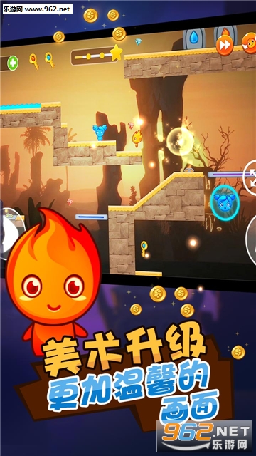 游戏角色采用经典的冰火人形象;