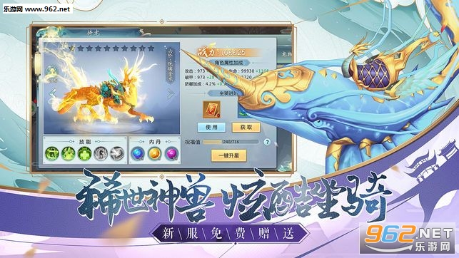 2、驯养仙兽神宠,培养你的最萌坐骑,开始更精彩的游戏玩法,体验无边际战斗之路;