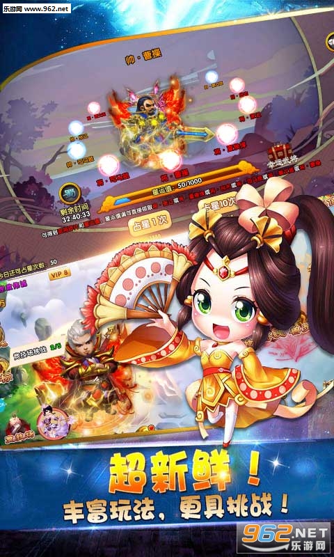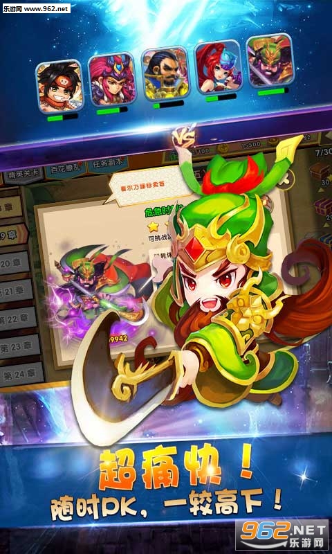 故事舞台的遥远的三国时期,未来的你即将携手众多三国武将展开全新的挑战。经典卡牌玩法、武将羁绊、兽灵系统,一个传奇的三国正在等你来战!上百三国神将听你指挥,在运筹帷幄中,揽获天下。全新的玩法配置,多方向养成武将路线,操作轻松,指尖点击释放大招,独创技能打断机制,让人感受前所未有的实时对战技巧性,进入游戏召集武将,展开改写历史的冒险吧!