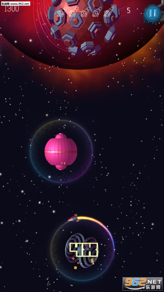 一开始我还以为是发射导弹摧毁行星,之后才发现原来是发射火箭到下一个行星轨道,游戏的难度并不低,火箭移动的速度非常快,再加上行星是移动的,角度不太好找,不过玩起来还是挺有意思的。