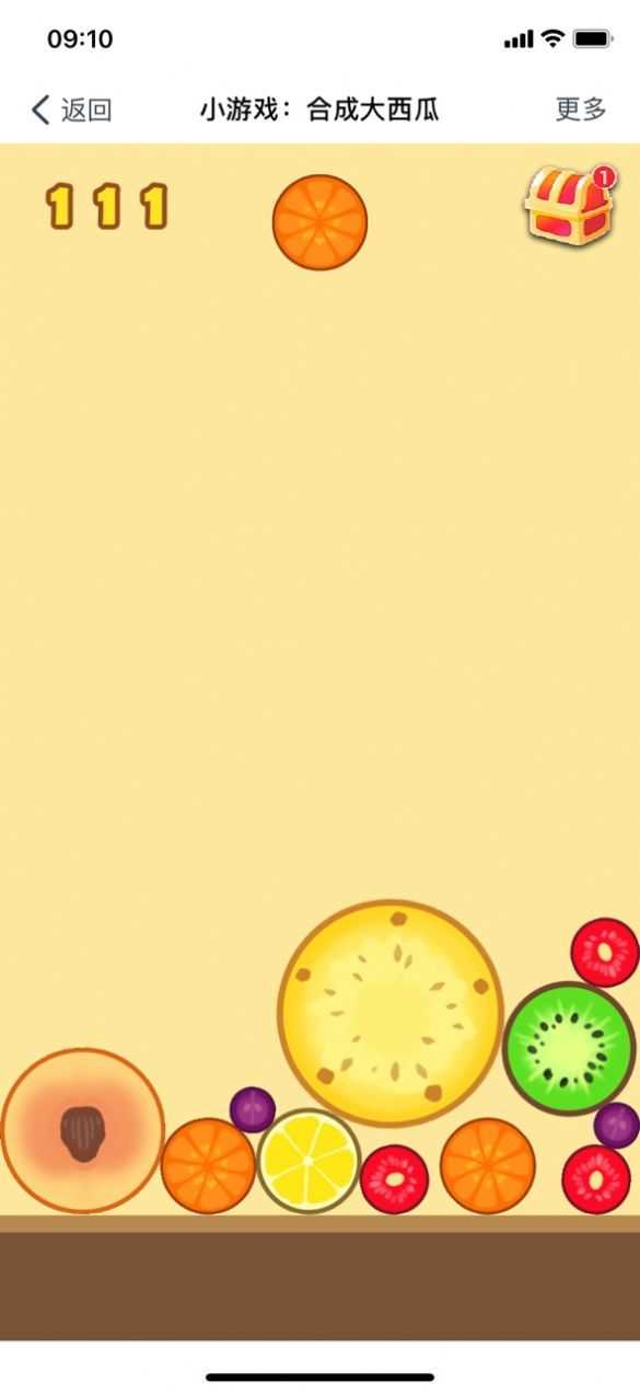 3、西瓜之间是不能融合的,当屏幕堆满水果的高度到达零界点时,挑战结束。