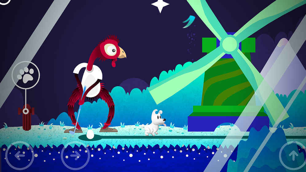 玩家需要操控米皮躲开丛林地上的裂缝、深海中的突刺、云朵上的雷电等各类障碍物,以保证米皮安全地前。一定要注意小灯泡,跟小骨头的收集,小骨头是开启关卡之门的神秘钥匙就不用说了,小灯泡则是在你无助,碰见无法解决的困难之时,能够给你相当不错的提示。