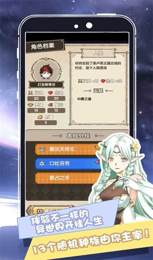 命运会让你在13个种族中轮回,所有的努力只为了能够到达世界树的顶端击败boss。