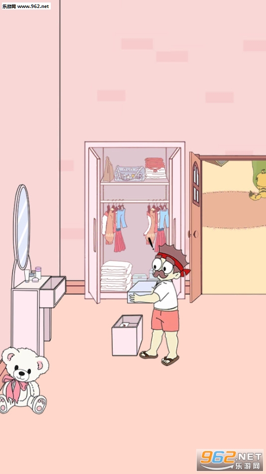 5.拿走房顶上的红色内裤让右边蹲在地上的小朋友穿上。