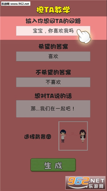 《不准拒绝我安卓版》这是一款超级有趣的抖音网红游戏。玩家需要设置想要问的问题,然后交给对象进行选择,而且绝对没有拒绝的按钮哦。游戏玩法简单易懂,感兴趣的玩家可以下载体验!