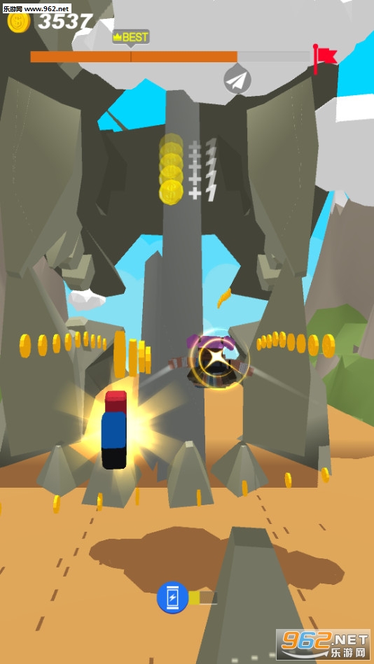 3、通过挑战自己的技能来收集硬币,而且还无比的刺激,哈哈Aero Hero来了!