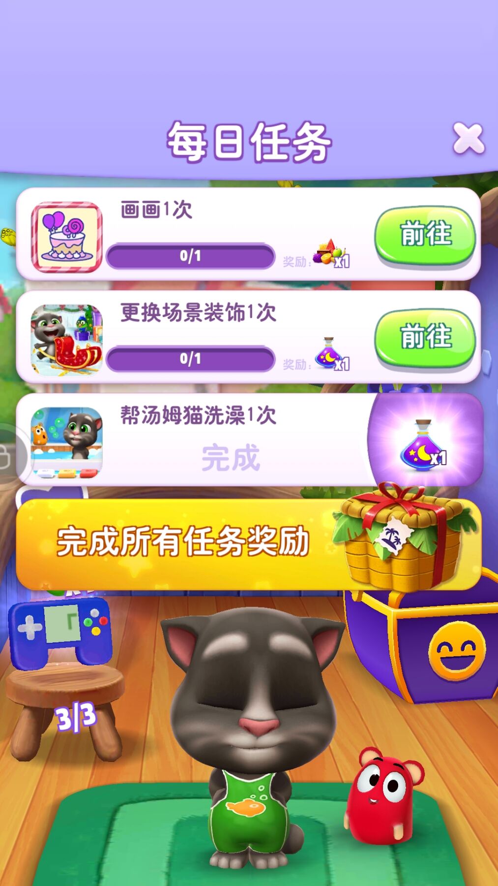 汤姆猫每天也像勤劳的打工人一样,都有每日任务需要完成,完成任务可以获得大奖!