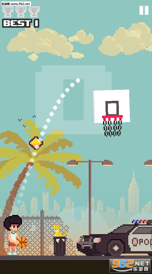 一款非常有趣的像素风街机休闲游戏,游戏中有着一半的辅助线,可以观察到出手的轨迹,这降低的一部分游戏的难度,在限时模式中,空心进球可以增加时间,需要你快速的反应来面对移动的篮筐,推荐给喜欢休闲游戏的玩家。