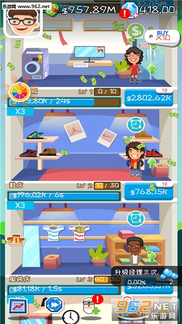 玩家需要经营不同的商店,打造繁荣的商业大楼,吸引更多的顾客,赚取海量的财富哦!