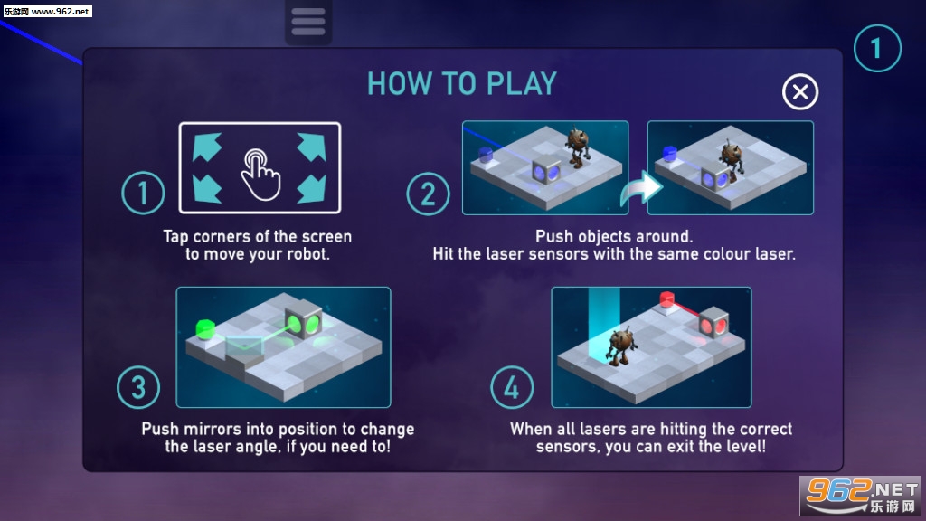 1、一款非常烧脑益智的另类激光元素的“推箱子”玩法休闲闯关游戏;