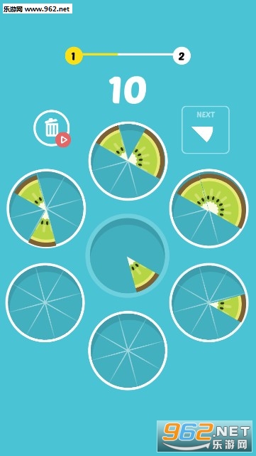玩家将水果切片,拖放到合适的圆内,通过仔细的布局,挑战更高的分数吧!