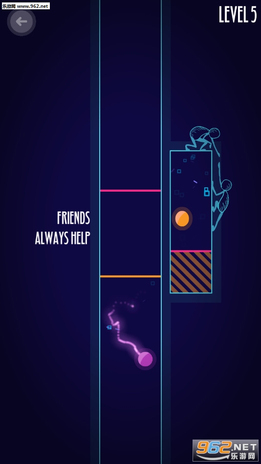 《一人故事安卓版》是一款画面简约的竖版闯关游戏,游戏中玩家将控制一个小球冒险,在管道中弹射前行,碰到红色线条会反向弹射,点击屏幕可以消除红线让小球顺利通过,松开屏幕红线将再次出现,玩家需要适时的点击和松开屏幕让小球不断向上前进。