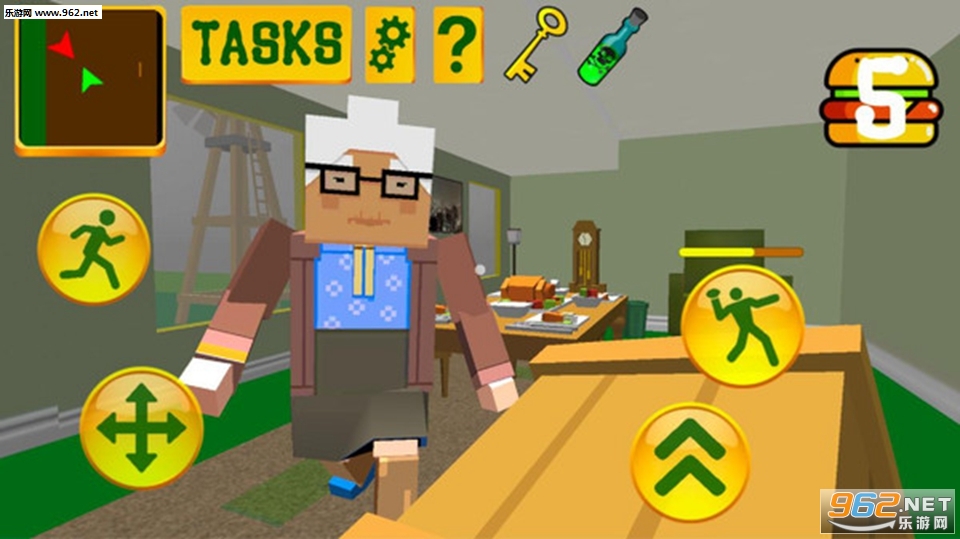 探索巨大的街区房屋而不被抓住。你的目标是她可怕的像素房子的上层阶段。也许你会找到她所有可怕的恐怖秘密的关键!这不容易,但不要害怕它只是一个可怕的像素奶奶!寻找,收集和使用许多有用的物品和食物。试着找管钳,武器,炸弹,立方体。这些物品可以帮助您调查这个神秘的块状邻居家!你会喜欢这个运行和隐藏块式工艺游戏!