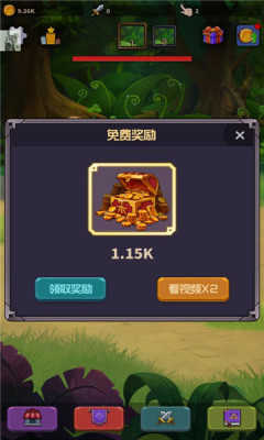 2、放置模式的探险任务,发现森林之中的宝藏,快速的击败了各种怪兽。