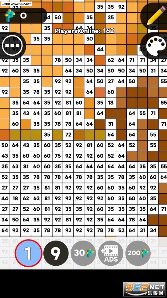 这是一个数字着色游戏,玩家将会体验到超大的游戏地图,与来自世界各地的一千多名玩家拼凑出巨大的图片,通过自身的颜色和数字,去满足不同方块的要求,从而进行涂色!