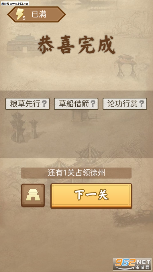 《成语三国安卓版》是一款画面简约的成语填词游戏,游戏中有着丰富的关卡,每个关卡会给出一些成语,当然也会将其中一些字扣掉,玩家需要从下方给出的字中选择正确的填入到上面的空白处,成语一个正确的成语,可以点击灯泡进行提示。