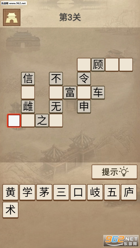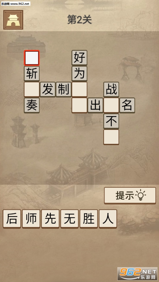 趣味的填词游戏,游戏中玩家可以从给出的字来猜测上面的成语,也可以根据自己的成语积累来想象空白处应该是什么字,可以一个个点击进行尝试,喜欢的朋友可以下载试试。