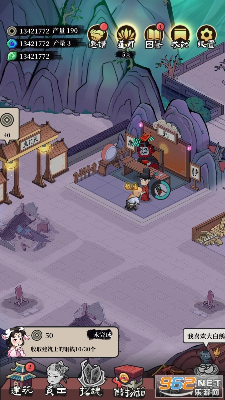 在游戏中玩家将扮演一名阴间的管理者,建造各种国风特色的设施建筑,完美还原古代神话中的阴间渡劫场景。