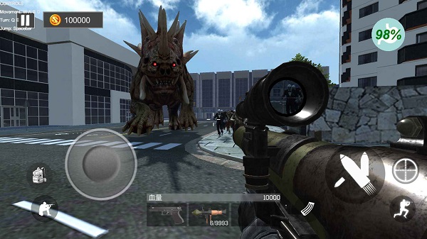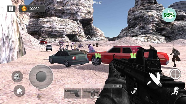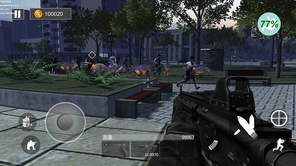 5、僵尸混乱攻击前线游戏,单击屏幕底部的虚拟按钮可以轻松操作;