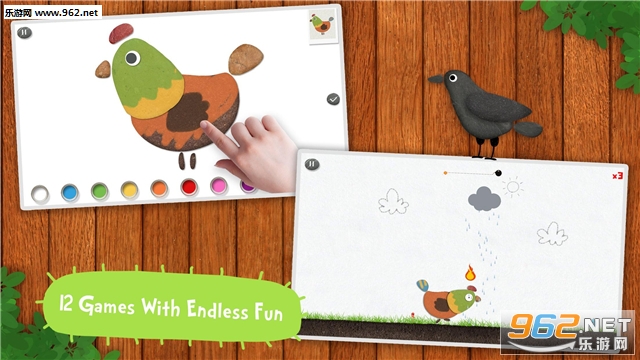 孩子们可以学习制作各种手工,为手工作品上色,更有12款有趣的游戏,让孩子们乐在其中!