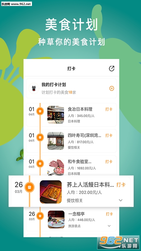 看着其他吃货的探店打卡,早馋了吧?遇到心动的美食,就赶紧加入“种草计划”吧!你所有的种草地点,都会被刷吃组建成一张智能地图。让你随时随地都能知道,自己与心动美食的距离。