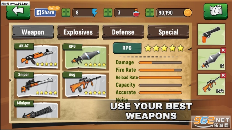 强大的武器。升级武器系统可以使你的武器更强大,并帮助你更容易在这场比赛中生存