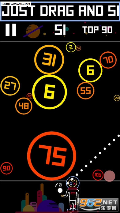 2、用越来越强的球粉碎圆圈,挑战你的最高分,与你的朋友竞争获得更高的分数;