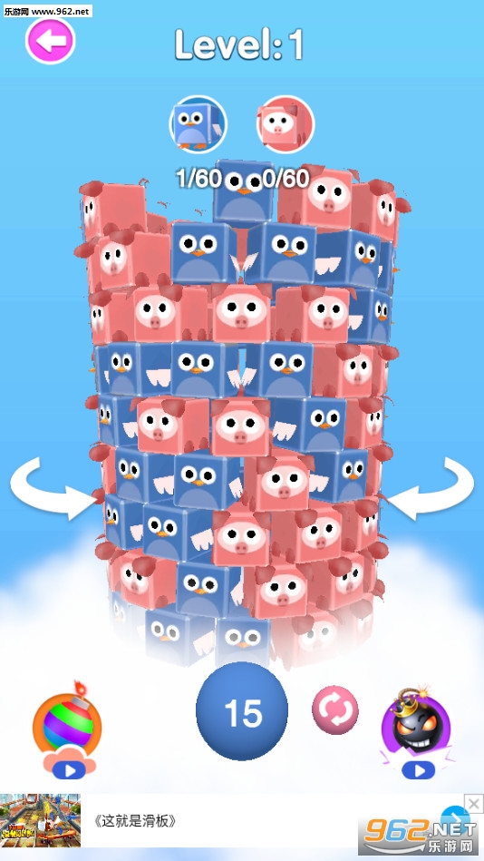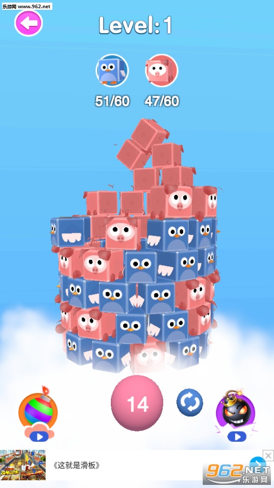 3、让场景中的砖块鸟数量越来越少,新的砖块也会不断的加入,不断的消除获得高分。