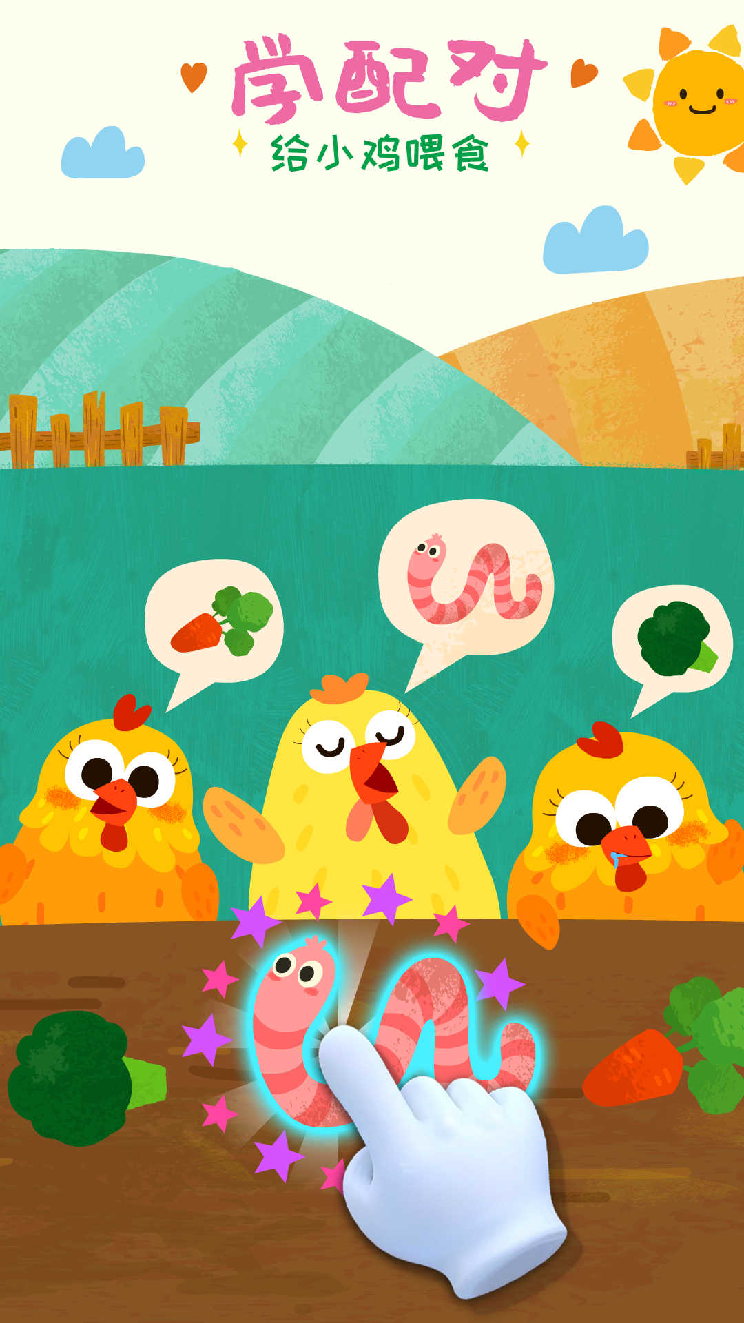庄园里小鸡饿了,你能找出小鸡喜欢的食物喂给它吗?接下来去清理羊毛吧,拿起刷子把绵羊刷洗干净。帮奶牛赶走牛蝇,喂它吃牧草。用农药枪瞄准击退胡蜂,保护蜜蜂!(学习配对,锻炼手眼协调能力)