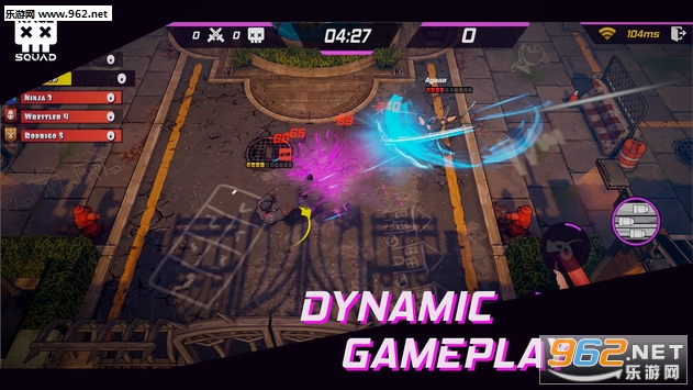 游戏的艺术风格十分突出,打开后亮丽的紫色十分吸引眼球,整体感觉也非常让人血脉贲张,忍不住想上竞技场与人好好较量一番,游戏的招式特效也及其华丽,拳拳到肉的感觉畅快淋漓,只有竞技场的主宰才能笑到最后。
